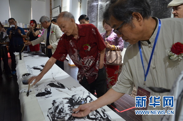 参展艺术家代表在进行书画创作。新华网发 王大玮摄