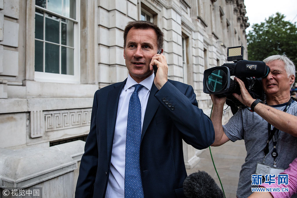 7月9日,英国伦敦,英国新任外交大臣杰里米·亨特抵达外交部。据BBC报道,杰里米·亨特将接任鲍里斯·约翰逊,成为英国新任外交大臣。早前,鲍里斯·约翰逊因脱欧政见分歧宣布辞职,英国首相特雷莎·梅已接受了辞呈。(图片来源:视觉中国)
