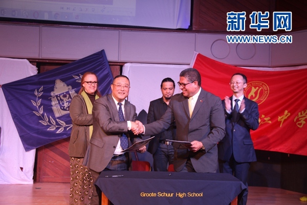 新华网开普敦7月10日电(记者 高原)中国上海市控江中学和南非开普敦格莱特舒尔高中近日在开普敦签署缔结友好学校协议。上海市控江中学校长姜明彦和格莱特舒尔高中校长马里尤斯·伊伦雷奇分别代表各自校方在协议书上签字。