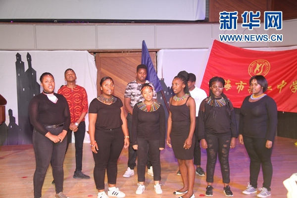 格莱特舒尔高中的学生在演唱南非歌曲。新华网发