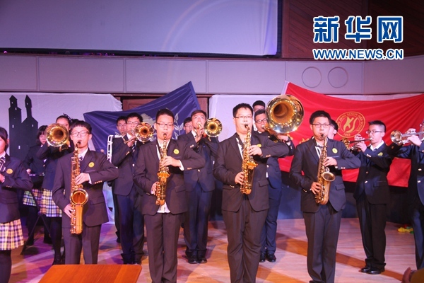 上海市控江中学的管乐队在演奏。新华网发