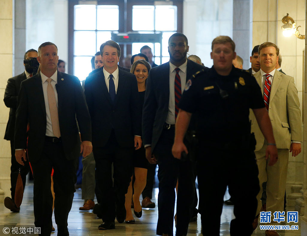 当地时间2018年7月11日,美国华盛顿,获特朗普提名出任联邦最高法院大法官的保守派法官布雷特·卡瓦诺轮番会见国会参议员。特朗普9日宣布布雷特·卡瓦诺顶替上月宣布退休的一名81岁的大法官。如果提名在国会参议院获得通过,意味着最高法院更加趋向保守。民主党预计将在参议院发起“狙击”,拉拢个别在堕胎等议题上趋向自由派的共和党议员,设法阻止卡瓦诺进入最高法院。(图片来源:视觉中国)