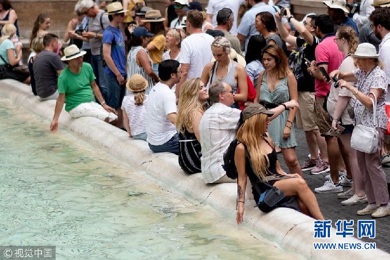 意大利高温来袭最高温直逼40度 游客聚集水池边纳凉