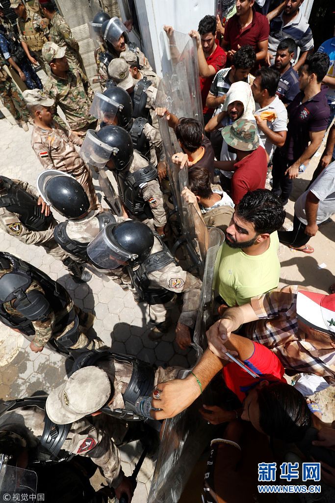 当地时间2018年7月15日,伊拉克巴士拉,示威者抗议失业和基础服务匮乏,数十名示威者受伤。由于急缺水、电供应,伊拉克南部爆发大规模骚乱,愤怒的伊拉克人纵火点燃了地方政府的办公地点,袭击了政府的基础设施。作为应对,伊拉克安全部队提高安全戒备,以防局势升级。(图片来源:视觉中国)