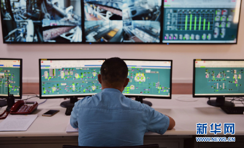 7月13日,在老挝沙湾拿吉省,一名工人在纸浆厂中控室查看实时数据。新华网发 刘艾伦摄