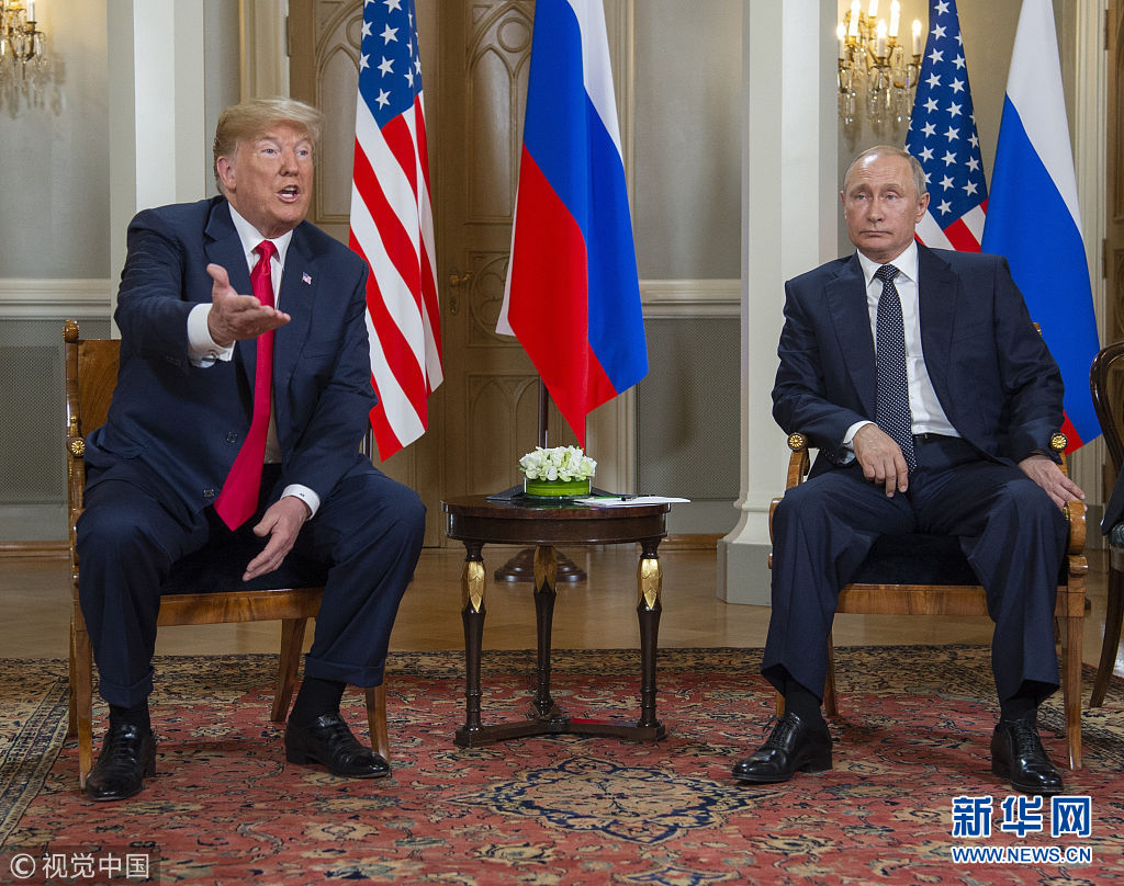 7月16日,芬兰赫尔辛基,美国总统特朗普与俄罗斯总统普京举行会晤。这是特朗普就任美国总统以来,美俄两国总统首次举行正式会晤。(图片来源:视觉中国)