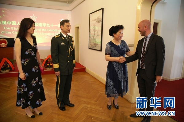 新华网哥本哈根7月19日电 (记者 和苗) 中国驻丹麦大使馆18日举行“八一”建军节招待会,庆祝中国人民解放军建军91周年。中国驻丹麦大使邓英、武官张济宇等出席招待会。