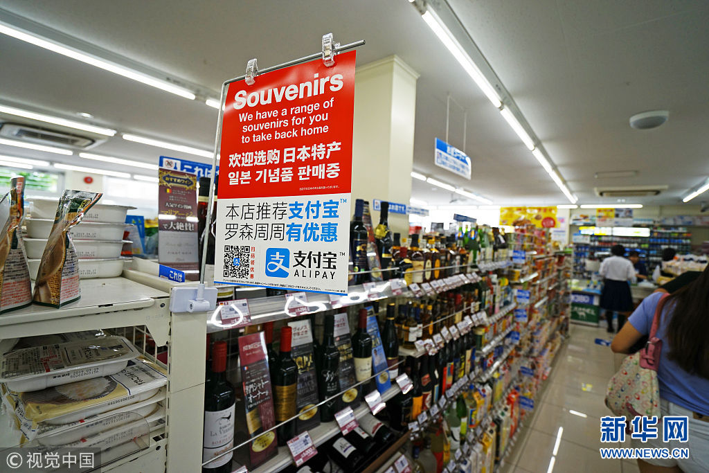 中国移动支付在日本推广 商业区现支付宝微信促销广告