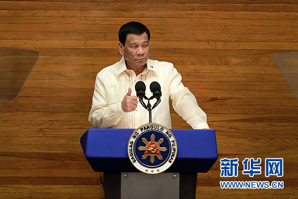7月23日,在菲律宾奎松城,菲律宾总统杜特尔特发表年度国情咨文。 新华社发(鲁埃勒·乌马利 摄)