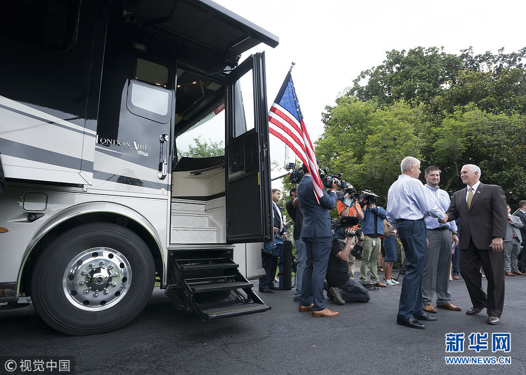 当地时间2018年7月23日,美国华盛顿,美国总统特朗普在白宫举办美国制造产品展览。报道称,展品涵盖从牛肉干牛仔靴等日常消费品到洛克希德马丁公司的F-35战斗机,还包括猎户座宇宙飞船。(图片来源:视觉中国)