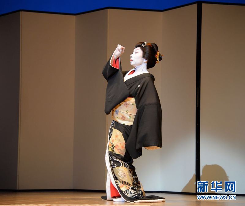 藤荫流派第三代传人藤荫静枝演绎以京都艺伎为表现对象的《黑发》。新华网记者 姜俏梅 摄