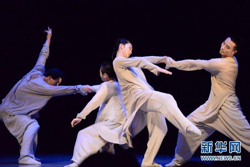 中国年轻舞者表演现代舞《一撇一捺·连接》。新华网记者 姜俏梅 摄