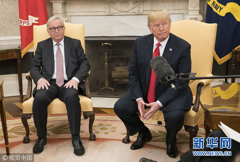 2018年7月25日,美国华盛顿,美国总统特朗普与欧盟委员会主席容克会面。(图片来源:视觉中国)
