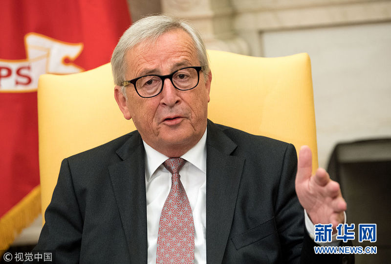 2018年7月25日,美国华盛顿,美国总统特朗普与欧盟委员会主席容克会面。(图片来源:视觉中国)