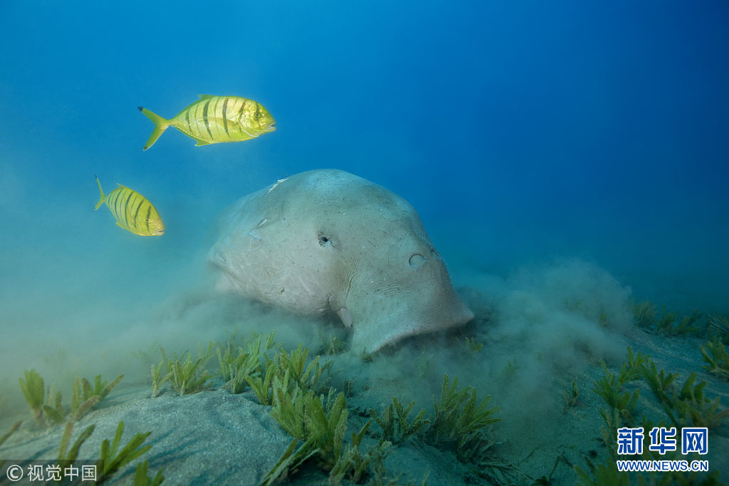 2018年7月26日讯(具体拍摄时间地点不详),一头体型庞大的儒艮在海中畅游。因雌性儒艮有怀抱幼崽到水面哺乳的习惯,还时常在头上披着海草,故儒艮常被误认为“美人鱼”。它们的嘴唇向下弯曲,鼻部在嘴唇上面,牙齿全部在嘴巴内部,吃东西的时候,看起来好似“吸尘器”一样在地面吸食海草,十分有趣。(图片来源:视觉中国)