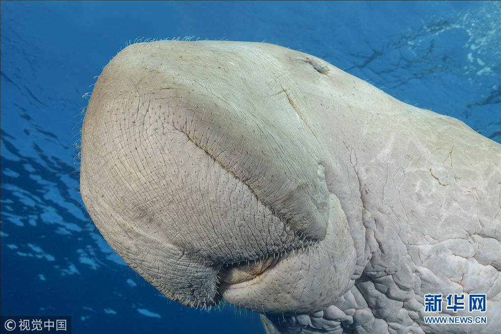 2018年7月26日讯(具体拍摄时间地点不详),一头体型庞大的儒艮在海中畅游。因雌性儒艮有怀抱幼崽到水面哺乳的习惯,还时常在头上披着海草,故儒艮常被误认为“美人鱼”。它们的嘴唇向下弯曲,鼻部在嘴唇上面,牙齿全部在嘴巴内部,吃东西的时候,看起来好似“吸尘器”一样在地面吸食海草,十分有趣。(图片来源:视觉中国)