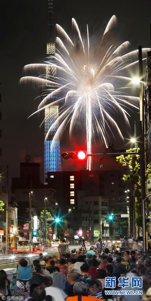 日本东京举行烟花节 绚烂烟花点亮夏日夜空
