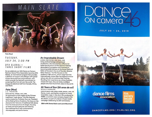 受美国舞蹈电影协会和林肯艺术中心邀请,由北京舞蹈学院郭磊校长指导创作的舞蹈纪录片《傩·缘》,日前参加了美国第46届舞蹈影像节在举世闻名的纽约林肯艺术中心Walter Reade Theater(沃尔特里德剧院)的展映。此舞蹈影像节被称为世界历史最悠久的舞蹈电影节,《傩·缘》荣幸入选为舞蹈电影协会全球三大电影作品之一,也是本次舞蹈电影节唯一的中国作品在林肯中心与世界观众见面。