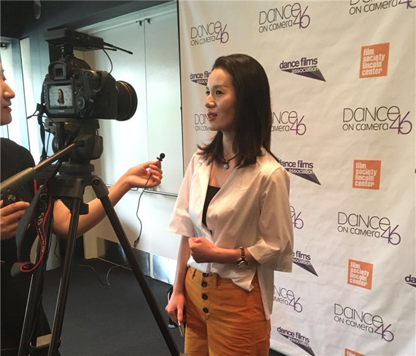 北京舞蹈学院党委宣传部胡晓娇老师代表主创团队参加舞蹈影像节并接受新华社北美总分社和纽约中文电视台等媒体采访。