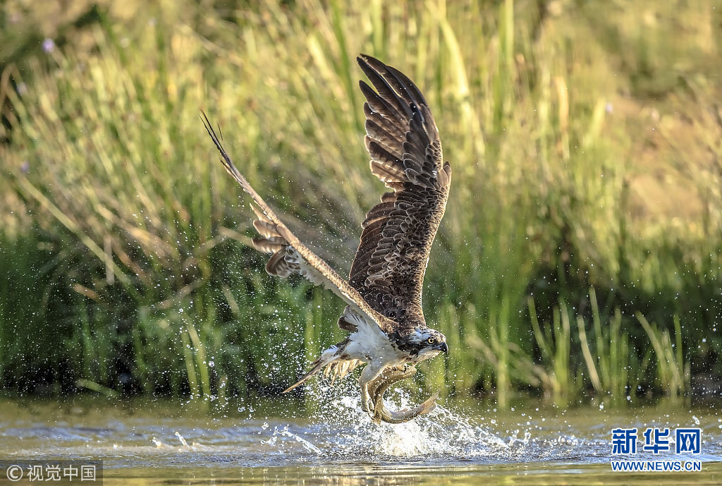 当地时间2018年7月30日,英国阿维莫尔,鱼鹰用双爪迅速抓起一条鱼。这些照片是摄影师Darren Dawson花费四个小时拍摄的。 (图片来源:视觉中国)