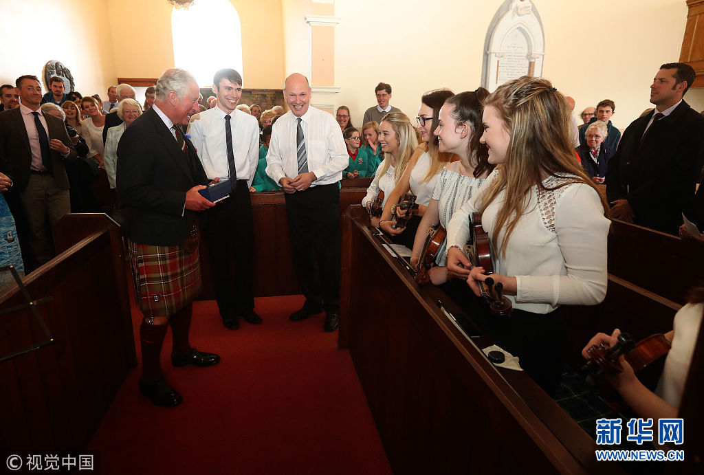 英国威尔士亲王访问苏格兰 穿方格裙造访教堂(组图)