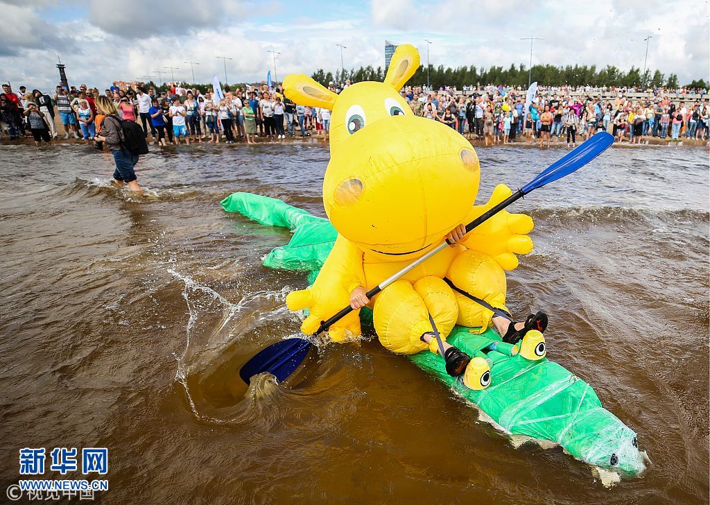 当地时间2018年8月5日,俄罗斯圣彼得堡,圣彼得堡公园举行萨帕利夫节手工充气玩具节,各式充气船只造型雷人脑洞大开。(图片来源:视觉中国)