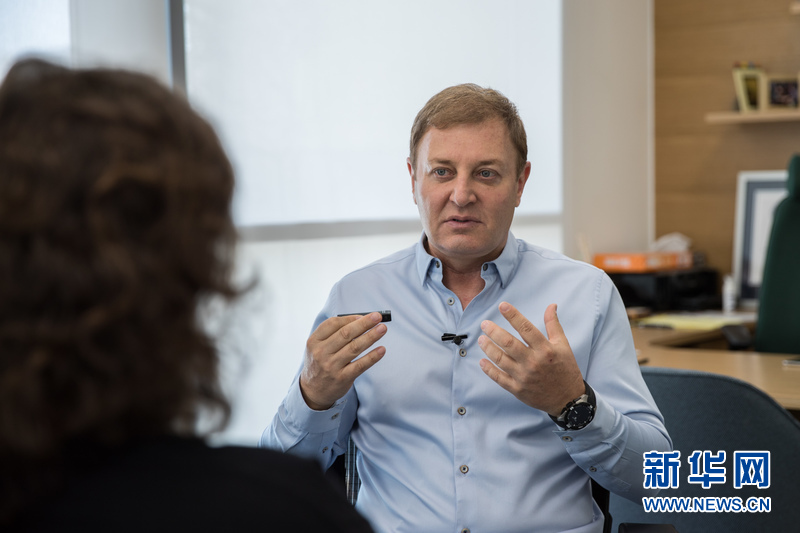 OrCam联合创始人兼首席执行官齐夫·艾维瑞姆在接受记者采访。新华网记者 郭昱 摄