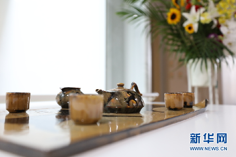 8月6日,在日本横滨展览现场拍摄的吉州窑陶瓷作品。新华网记者 杜潇逸摄