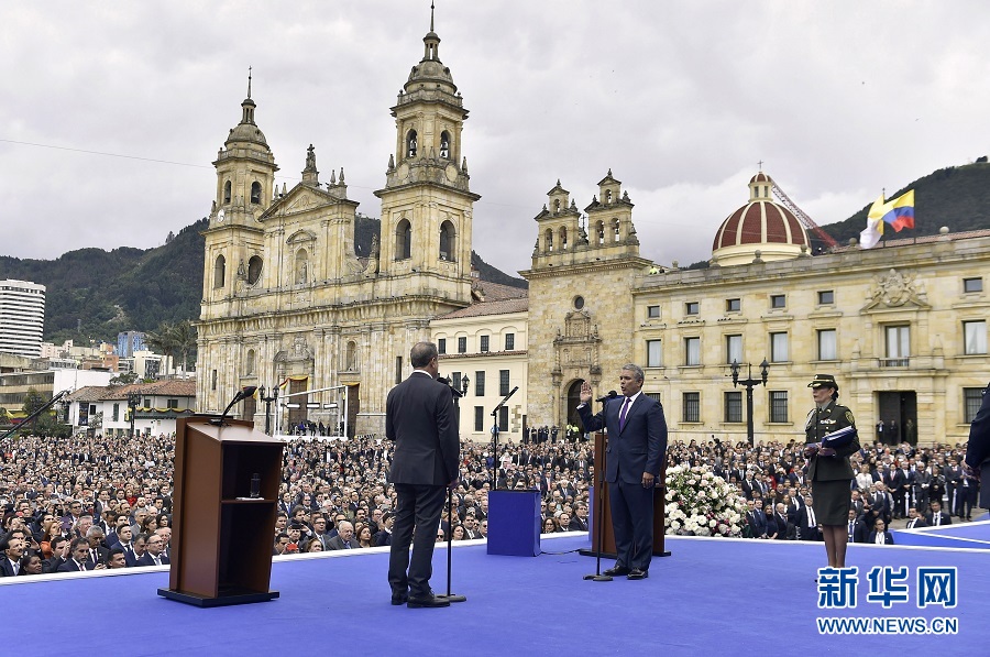 新华社波哥大8月7日电(记者何珊)哥伦比亚新任总统杜克7日在首都波哥大市中心玻利瓦尔广场宣誓就职,正式开始为期四年的总统任期。