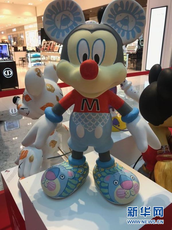 图为带有新加坡标志鱼尾狮图案的米奇。新华网发 王丽丽摄