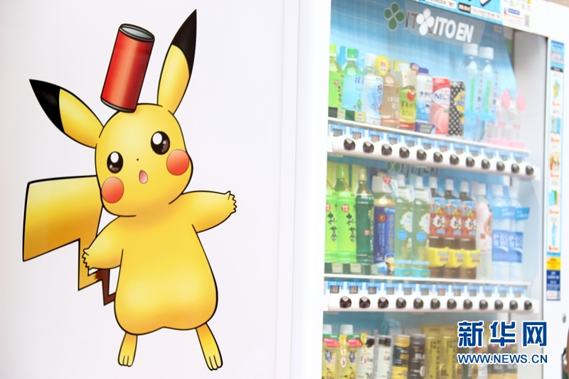 8月10日,日本横滨,带有皮卡丘形象的自动售货机。新华网发 彭纯摄