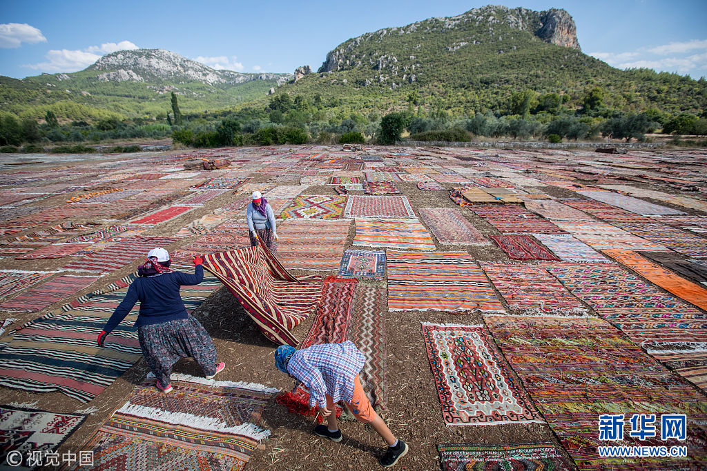 土耳其民众为地毯晒“日光浴” 高空俯视仿佛油画色块