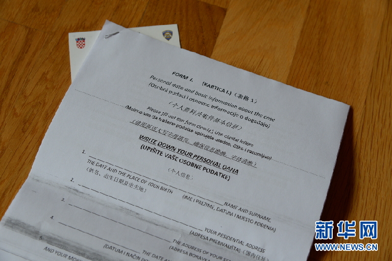 这是8月11日拍摄的标注中文的克罗地亚报警表格。在参加首次中克旅游季警务联巡的中国警察推动下,克罗地亚警方10日正式启用标注中文的报警表格。新华网记者 高磊摄