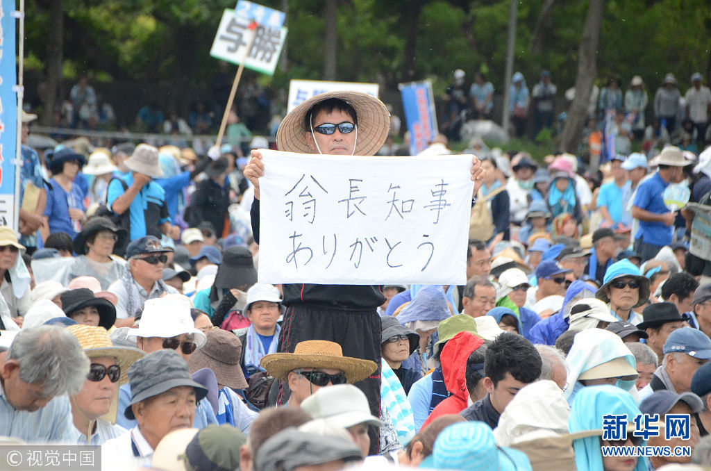 当地时间2018年8月11日,日本冲绳县约7万民众8月11日在那霸市举行大规模集会,反对驻日美军将普天间基地迁往名护市边野古地区,要求驻日美军放弃在边野古地区新建基地并立即关闭普天间机场。当天,日本东京都、大阪府、福冈、北海道县等地民众也同时举行集会和游行,抗议日本政府推进边野古地区填海施工。(图片来源:视觉中国)