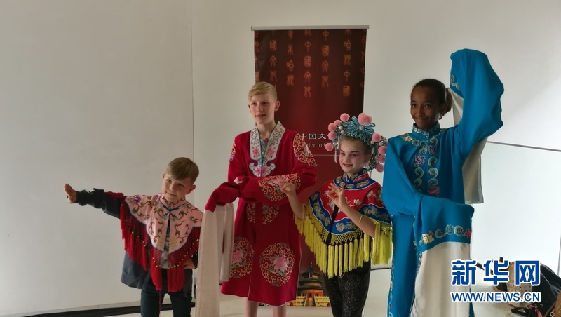 丹麦小粉丝展示刚学会的京剧表演动作。新华网发(张力摄)