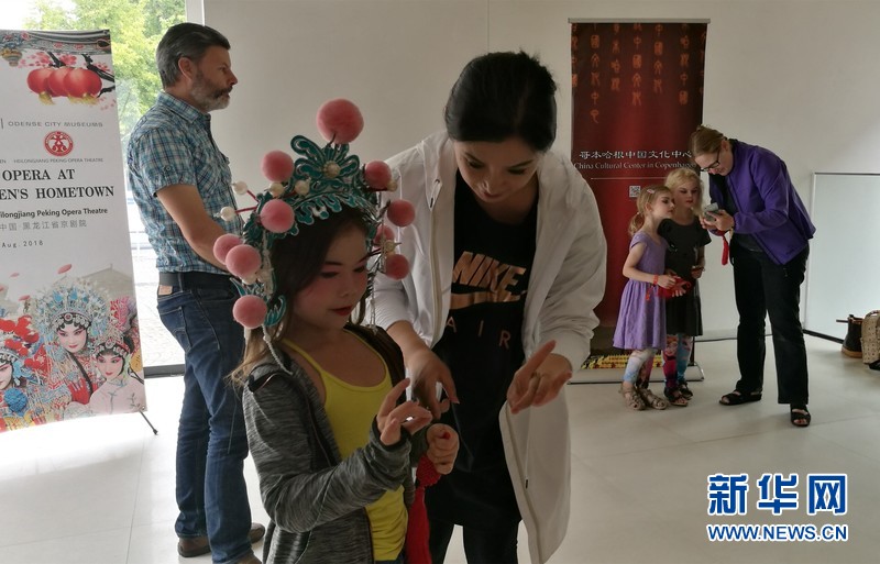 应哥本哈根中国文化中心邀请,中国黑龙江省京剧团12日在丹麦第三大城市、安徒生的故乡欧登塞市为当地民众和游客献上精彩的国粹京剧表演。期间,演员们利用休息时间在安徒生博物馆为慕名前来的小粉丝们介绍京剧的魅力。