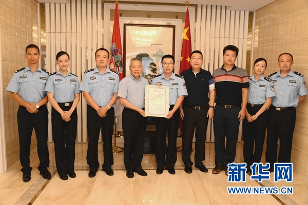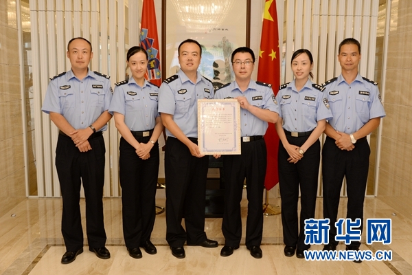 8月14日,中国驻克罗地亚大使胡兆明(左四)在萨格勒布为圆满完成首次中克警务联巡的中国警察颁发表彰证书。6名中国警察15日从克罗地亚首都萨格勒布启程回国,为期一个月的中国与克罗地亚首次旅游季警务联合巡逻圆满结束。新华网发 高磊摄