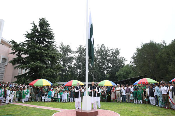 在独立日庆祝仪式上,巴基斯坦驻华大使马苏德·哈立德亲自升起巴基斯坦国旗,并宣读了巴基斯坦领导人发来的贺电。
