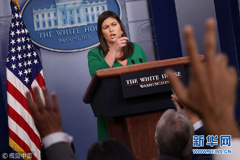 当地时间2018年8月15日,美国华盛顿,白宫新闻发言人桑德斯召开新闻发布会。据路透社报道,美国白宫发言人桑德斯称,特朗普周三(15日)撤销了前中央情报局(CIA)局长布伦南的安全许可,并指责布伦南利用涉密信息,针对特朗普政府“散播分裂与混乱”。报道还说,特朗普正在研究撤销其他几名前美国政府官员的安全许可。布伦南曾先后在小布什政府和奥巴马政府中任职,他对特朗普的批评可谓不留情面。(图片来源:视觉中国)
