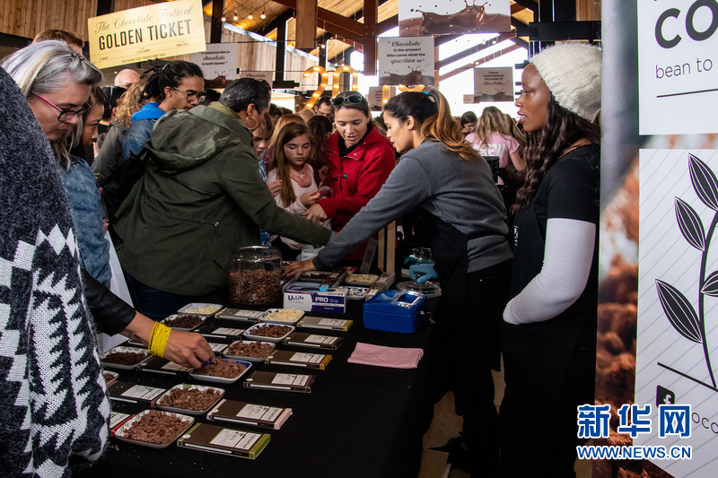 图为游客在品尝巧克力。新华网发(琳达·易摄)