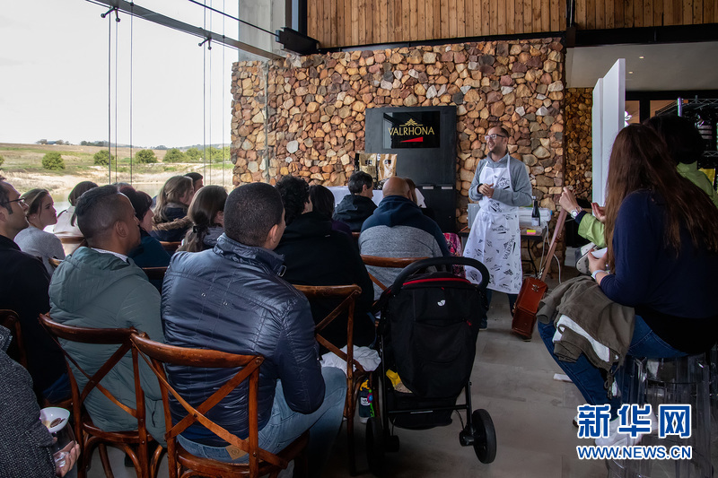 图为一名巧克力制作者在讲课。新华网发(琳达·易摄)