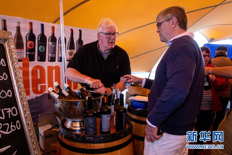 图为一名游客在巧克力节上品酒。新华网发(琳达·易摄)