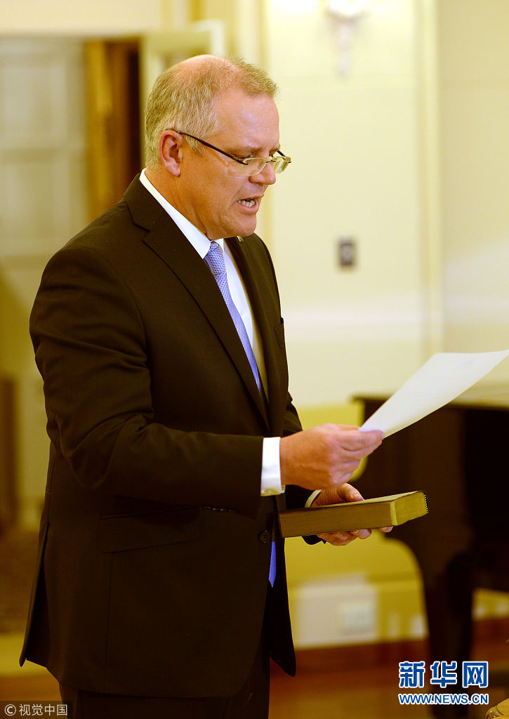 当地时间2018年8月24日,澳大利亚堪培拉,澳大利亚新任总理莫里森宣誓就职。(图片来源:视觉中国)