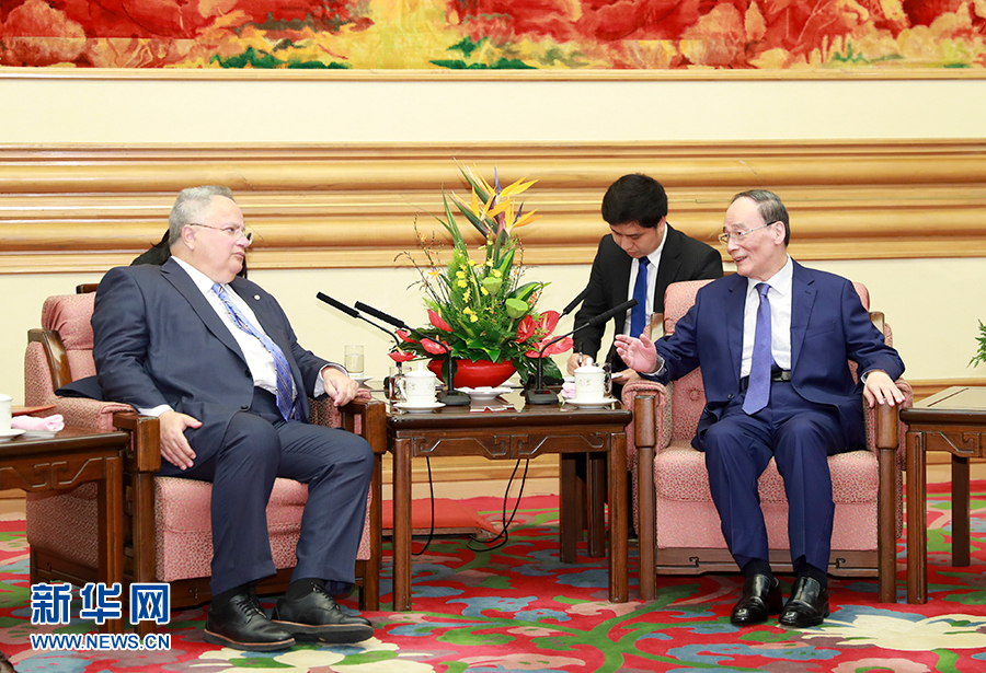 新华社北京8月28日电(记者王卓伦)国家副主席王岐山28日在中南海会见希腊外长科恰斯。