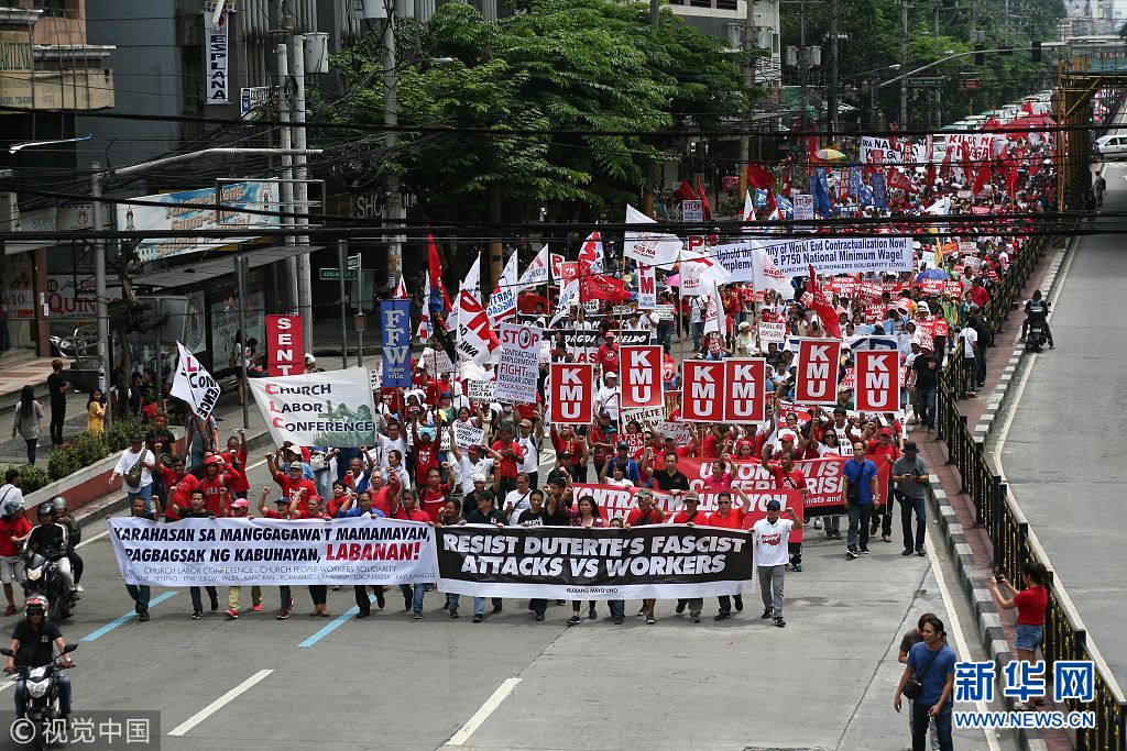 当地时间2018年8月27日,菲律宾马尼拉,数千人走上街头参加游行,呼吁结束劳工契约化和提高最低日薪。(图片来源:视觉中国)