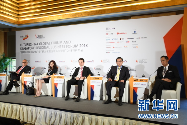 8月27日“慧眼中国环球论坛”暨“新加坡暨区域商务论坛”2018特别年会在新加坡开幕。图为分场讨论——“东盟经济体如何在世界舞台脱颖而出”现场。 新华网发(图由通商中国提供)