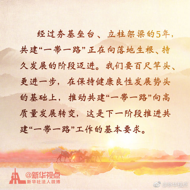 【推进“一带一路”建设工作5周年座谈会金句】经过夯基垒台、立柱架梁的5年,共建“一带一路”正在向落地生根、持久发展的阶段迈进。27日,中共中央总书记、国家主席、中央军委主席习近平在北京人民大会堂出席推进“一带一路”建设工作5周年座谈会并发表重要讲话。来看看这些金句。