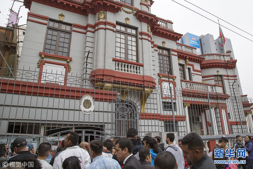 当地时间2018年8月28日,秘鲁利马,委内瑞拉移民在委内瑞拉大使馆外排队,等待领取护照。为应对难民潮,秘鲁8月25日修订了委内瑞拉人入境秘鲁的条件,要求入境要出示护照。 (图片来源:视觉中国)