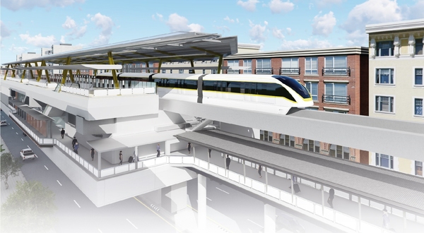 曼谷轨道交通黄线效果图。新华网发(泰国捷运局供图)