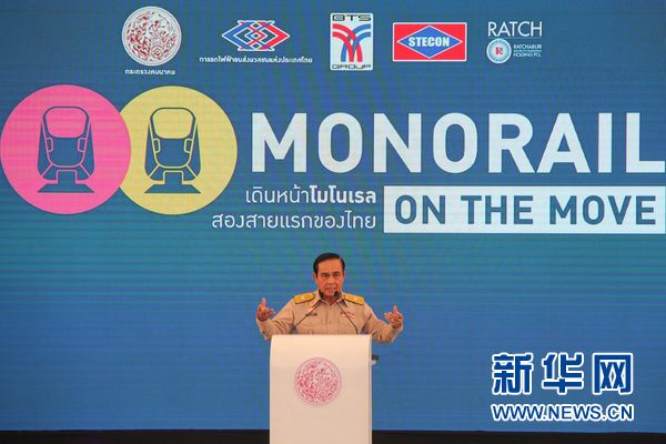 泰国总理巴育在曼谷轨道交通黄线、粉线开工仪式上讲话。新华网记者 杨舟 摄